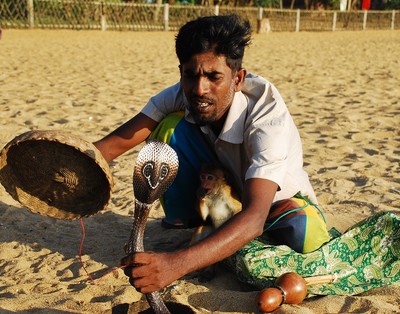 Для такого аттракциона у змеюк зубы ядовитые, как правило, вытащены. А вот, во Вьетнаме, когда мне гадюку готовили на ужин, там с зубами было всё в порядке и мальчик ловко их из мешка доставал. Вот там был живой аттракцион.