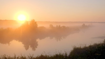 Озеро Сосновое окутано туманом.