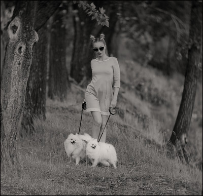девушка,собачки