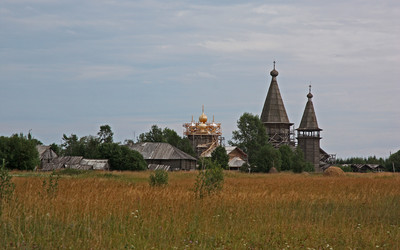 Лядины Каргпольский район, Село Большие Лядины. В ансамбль на Лядининском погосте входят зимняя двенадцатиглавая Богоявленская церковь (1793 г.) с пышными куполами и трапезной; летняя высокая шатровая Покровская церковь (1761 г.); высокая восьмигранная шатровая колокольня (1820 г.). |