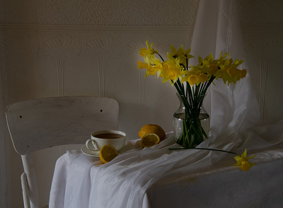 не думаете, что свет для натюрморта надо ставить много сложнее? А мазать кистью, высветляя цветочки надо аккуратнее? А если уж мазать, то все цветочки и стенку не трогать... Кнопка бана вам известна где находится. |