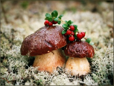 Зря ягодами натуральность картинки испортили, может как нибудь в стороне разместить, и от центральности картинки увести, но не так аккуратно на грибах... а грибчики хороши, свежеть чувствуется