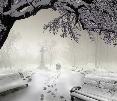 снег,Пушкин,Кишинёв,парк,пара,скамейки,туман