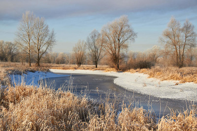мороз,озеро,деревья