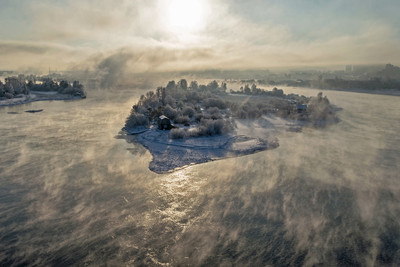Остров на Ангаре морозным утром.