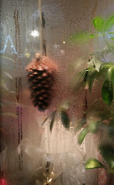 Вот так зима у нас в этом году. Вместо затейливых морозных узоров на окнах -дождевые капли...