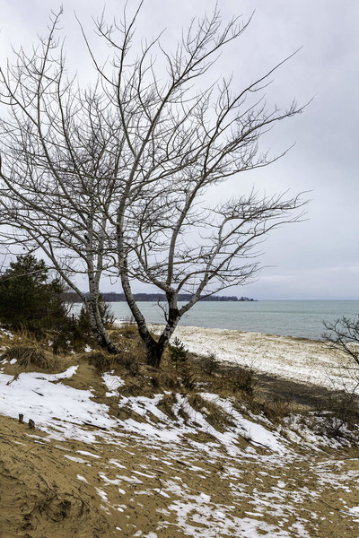 The trees on the dunes in the winter give the scene an awesome look