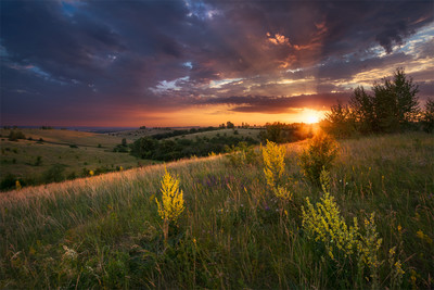 Сочный свет,попав на верхушки травы и неба усилил эфект картинки и привлёк внимание