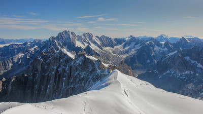 Часть Западных Альп на территории Франции Вид с Эгюй ди Миди - 3842 метра на Эгюй Верт- 4122 метра.