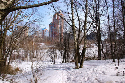 Весенняя опушка лесопарка на юго-западе Москвы. Не поверишь - там где стоят высотные дома - Ленинский проспект.Одна из главных улиц города.