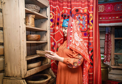 В стиле станины, здОрово! Самовар, изделия из бересты, дерева, узоры на тканях! Класс!