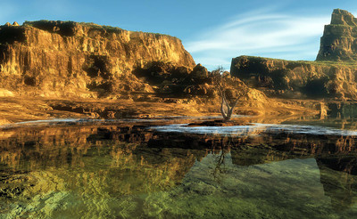 Какой интересный эффект - скалы и их отражение в водной глади сливаются и невозможно отличить отражение от реальности. Супер!!!