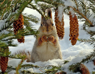 Белки являются всеядными грызунами, и питаются самыми разными кормами, основную массу среди них составляют семена хвойных деревьев (ель, сосна, сибирский кедр, пихта, лиственница).