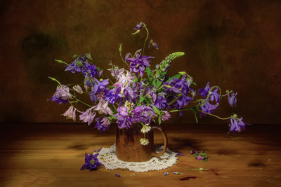 Ах какой милый букет аквилегий, а люпин еще и аромат придал.