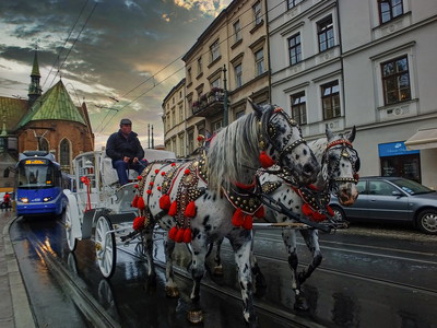 Какие красивые лошадки! И повозка непростая. Интересный сюжет.