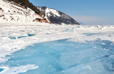 Мартовский лёд на безлюдном Байкале, нет китайских туристов.