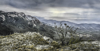 Пасмурный пейзаж с кустиком.