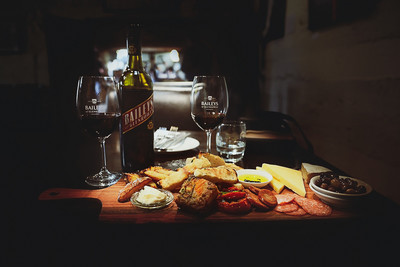 Boris, ну да.... Весь прикол в этом... Не с шоколадкой или там пироженкой, мороженкой, а с колбасой)............... Но на самом деле это не тот сладкий ирландский ликёр, а - ВИНО.. , сыры, поджаренный хлеб, бочковые оливки и колбасы отлично сочетаются с вкусом Baileys Glenrowan .