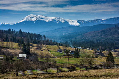 Вид в направлении горы Петрос из высоких окрестностей села Лазещина (Закарпатье). 13 апреля 2018 г.