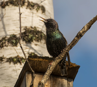Красиво показан поющий скворушка!