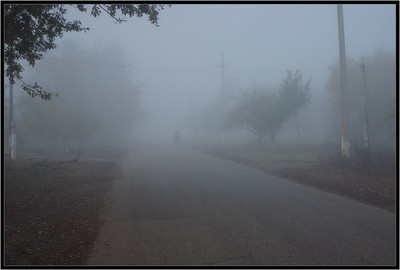 утренний туман, куда едет этот человек..? Что там ?