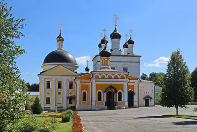 Вознесенская Давидова пустынь Вознесенская Давидова пустынь, расположена на высоком правом берегу реки Лопасни (приток Оки) на территории древней Хатунской волости, рядом с нынешним посёлком Новый Быт, Чеховского района Московской области Монастырь основан 1515г Слева на право,Жёлтая – Никольская церковь Сооружена в 1804 г.В стиле – ампир, на месте придела XVII в., служила зимним храмом. Оранжевая – Знаменская церковь. Кирпичный одноглавый храм в псевдорусском стиле, пристроенный с северо-запада к Вознесенскому собору . Сооружен в 1865-1870 на месте колокольни начала XVIII века. Белая- Собор Вознесения Господня построен в 1676-1682 гг. В его основе лежит каменный храм, начатый строительством в 1570-х гг. по указу Ивана Грозного |