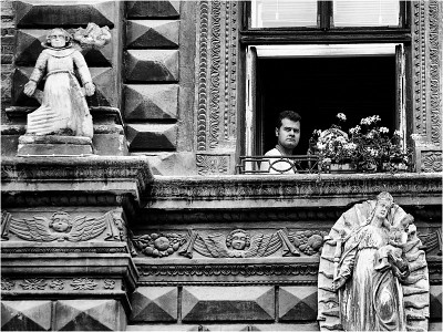 Улыбка спасиб. Как мне показалось, что мучается человек этим навязчивым образом справа от него за углом...;)