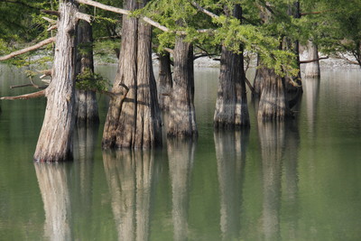 Рано утром можно полюбоваться такими красивыми отражениями величественных кипарисов в озерной глади.