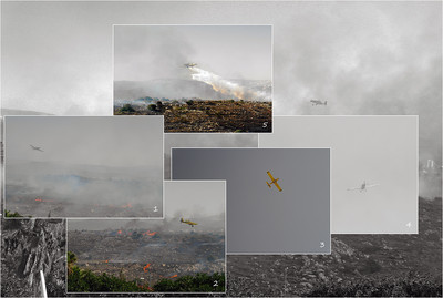 Покадровая разбивка захода самолёта на очаг возгорания.
