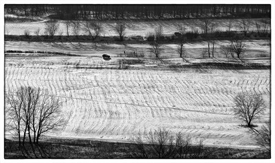 , конечно попробуй. Иногда получается интересно. Здесь, например, меня привлекли перпендикулярные линии еще не закрытой снегом пашни и берегов проток, дорог.