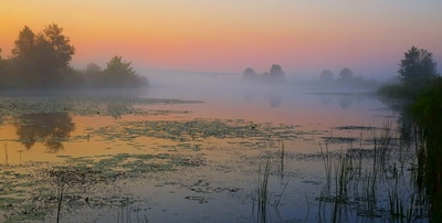 Середина лета. Утренний туман на озере Сосновое, юго-восток Московской области.