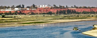 Вид из Тадж-Махала на крепость Агра на берегут реки Джамна
