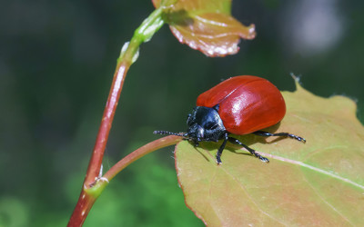 Красный жук листоед