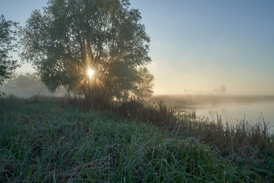 рассвет,озеро,туман
