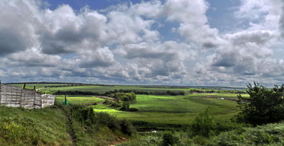 Поле,деревья,горизонт,облака