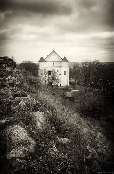 Новогрудок, костел Преображения Господнего (фарный) Костел возведен в 1712—23 гг. на месте заложенного в начале XV в. храма, три бессистемно скомпонованные граненые часовни которого вошли в объемную композицию костела. В этом храме 12 февраля 1799 г. крещен Адам Мицкевич. |