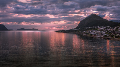 Вечерний Олесунн. Норвегия. Вот такой малиновый закат был при отплытии из этого прекраснейшего города.