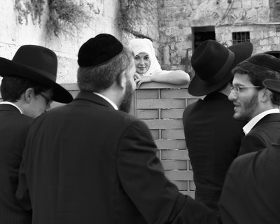 , Не уверен, площадь перед Стеной разделена на мужскую и женские половины. Думаю на женской ей стало не интересно, а на мужской занятно..))