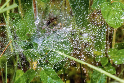 Проблемы с фокусом Паутинка в лесу, в траве. И паучок в лунке паутинки, промах в фокусировки, оказалась по краю почти на капле крупной, а не на главном объекте.. Паучок и паутинка ранним утром в лесу. Капли на нитях паутины, после дождя.. |