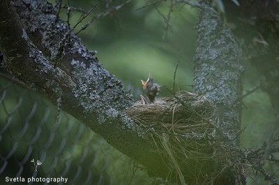 Птенчик дрозда. Соскучился по маме. Мама прилетела чуть позжес кучей червяков))