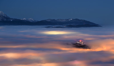 Kurz vor Sonnenaufgang und Nebel aufgenommen vom Gaisberg