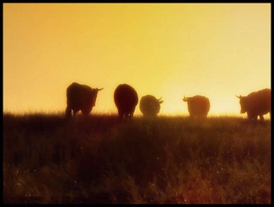 Интересная фотография, стоило бы поправить горизонт, взять немного правей перед тем как нажимать кнопку, либо замазать самую правую корову!