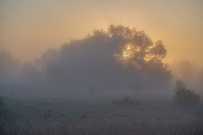 рассвет,туман,деревья