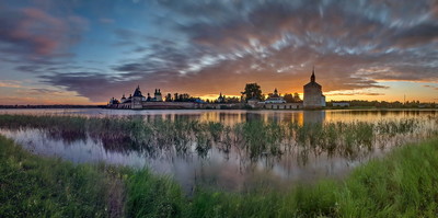 Кириллово-Белозерский монастырь перед восходом солнца.