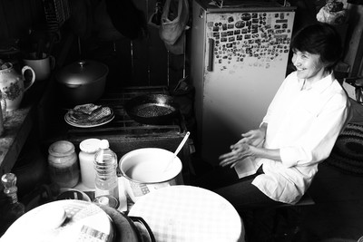 Тогда пятнышки с холодильника плавно перетекали бы вниз справа-налево уменьшаясь в размере и тонально от светлого фона к тёмному.