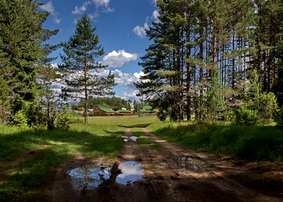 Маленькая лужица, но в ней замечательно отразилась сосна!