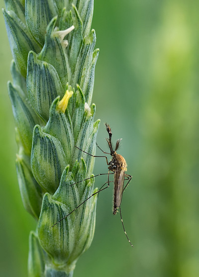 Самец комара обыкновенного на колоске пшеницы...
