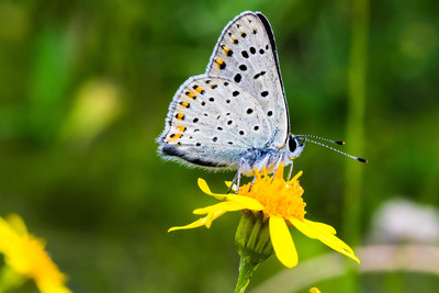 Симпатичная деловая голубянка! Так и хочется сказать: Ну,пожалуйста, раскрой свои замечательные крылышки!- Ан, нет! Сейчас нырнёт в траву!