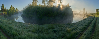 рассвет,туман,река