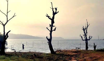 Интересный свет, Татьяна? Давайте глянем... Сами по себе драконовы коряги, несомненно, из "затереного" мира. Только слева что-то обрезалась. Небо в разводах как от бензина - именно наше будущее. Однако, Татьяна, мир этот вовсе не пустынный. Тот мусор, что торчит из воды - это не шлак, это перископы подводных лодок, массово заполняющих водоем. Передний план, очевидно, пережил некую катастрофу.
